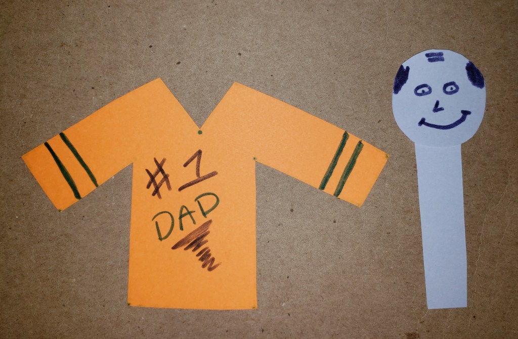 - Print out the shirt and head template found Here. Cut them out then trace onto colourful card stock or construction paper. Draw the face of your dad on the head and colour the shirt with something your dad likes maybe even adding a “#1 Dad” or “Worlds Best Dad” Phrase to it.
