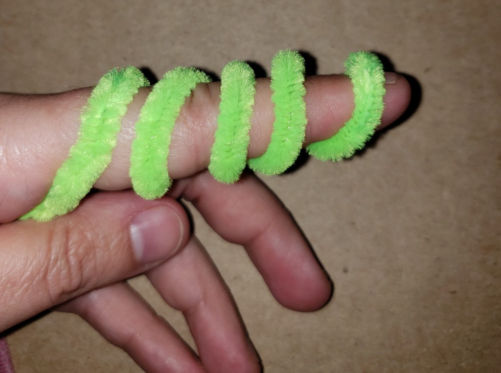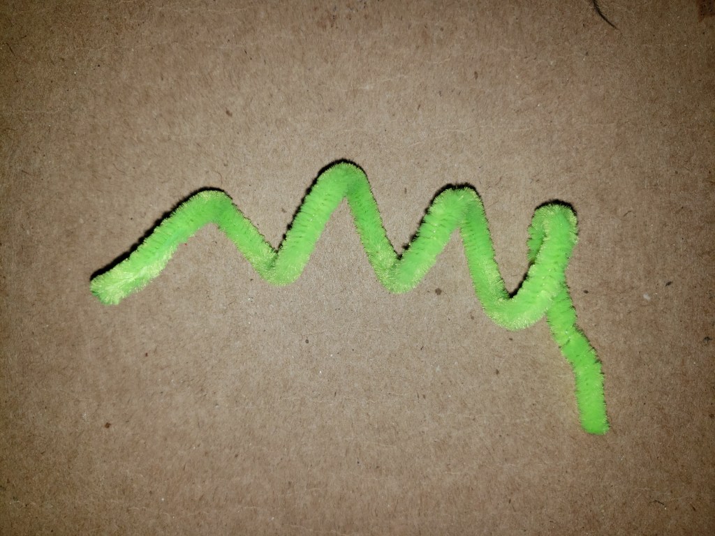 Poke the pipe cleaner spring through the hole and fold the end over so it stands straight up