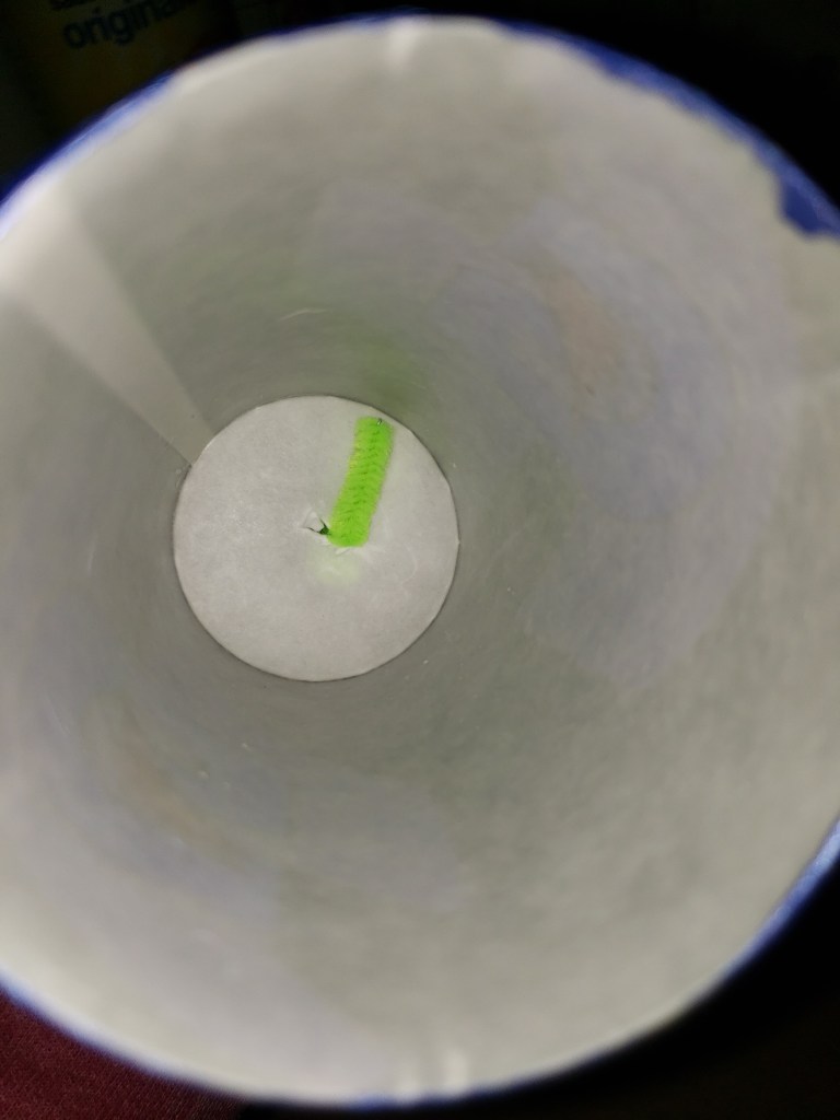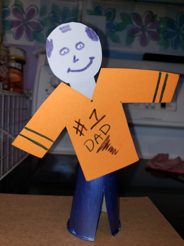 When the cup is dry cut out a triangle in the front for your dad’s legs