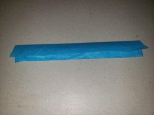4. Cut your remaining tissue paper into 3 inch strips (minimum 5). Fold one strip in half, cut slits all along the strip.