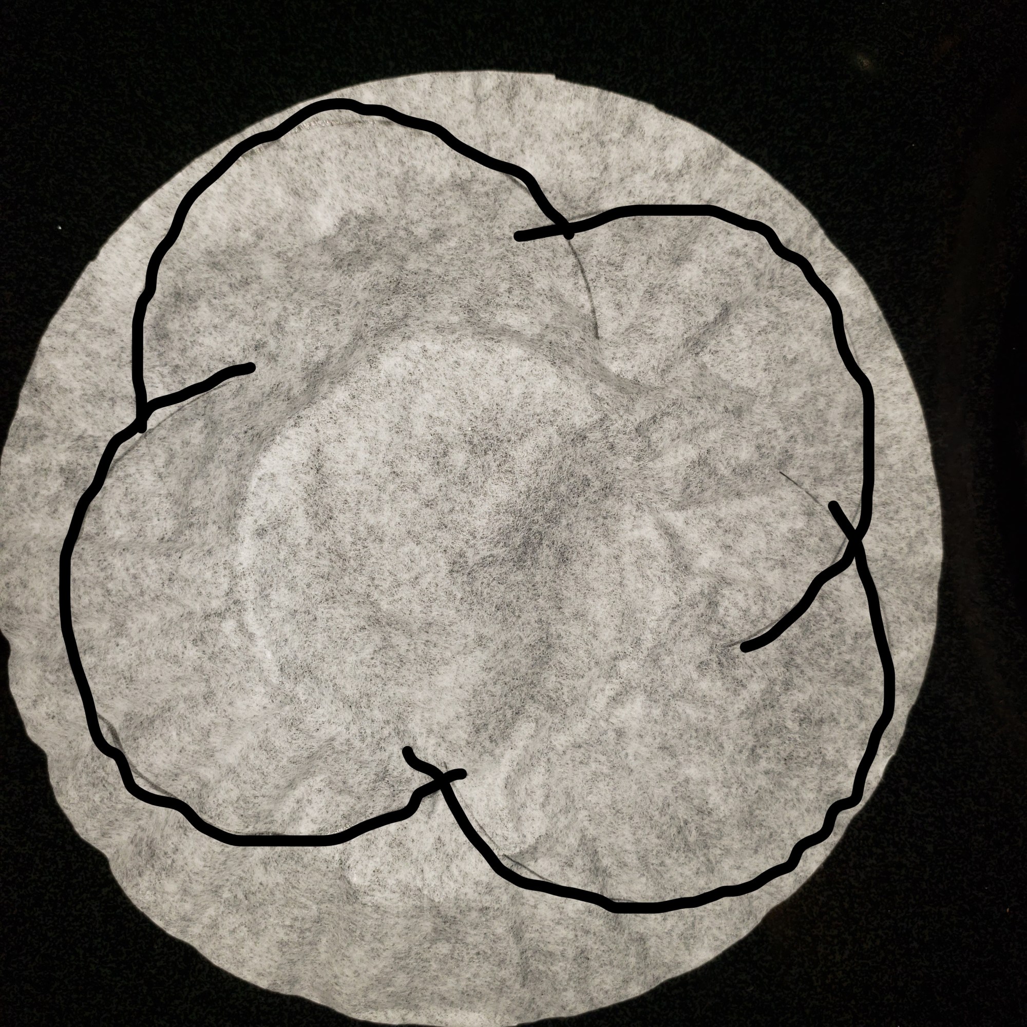 Draw a flower the size of the filter with 4 or 5 pedals, using a pencil. You could also trace one half of a cup around the edge of the filter to make thicker pedals. (our lines are dark so you can see the shape as every picture we took the pencil lines were too dark and would not show up on camera.)