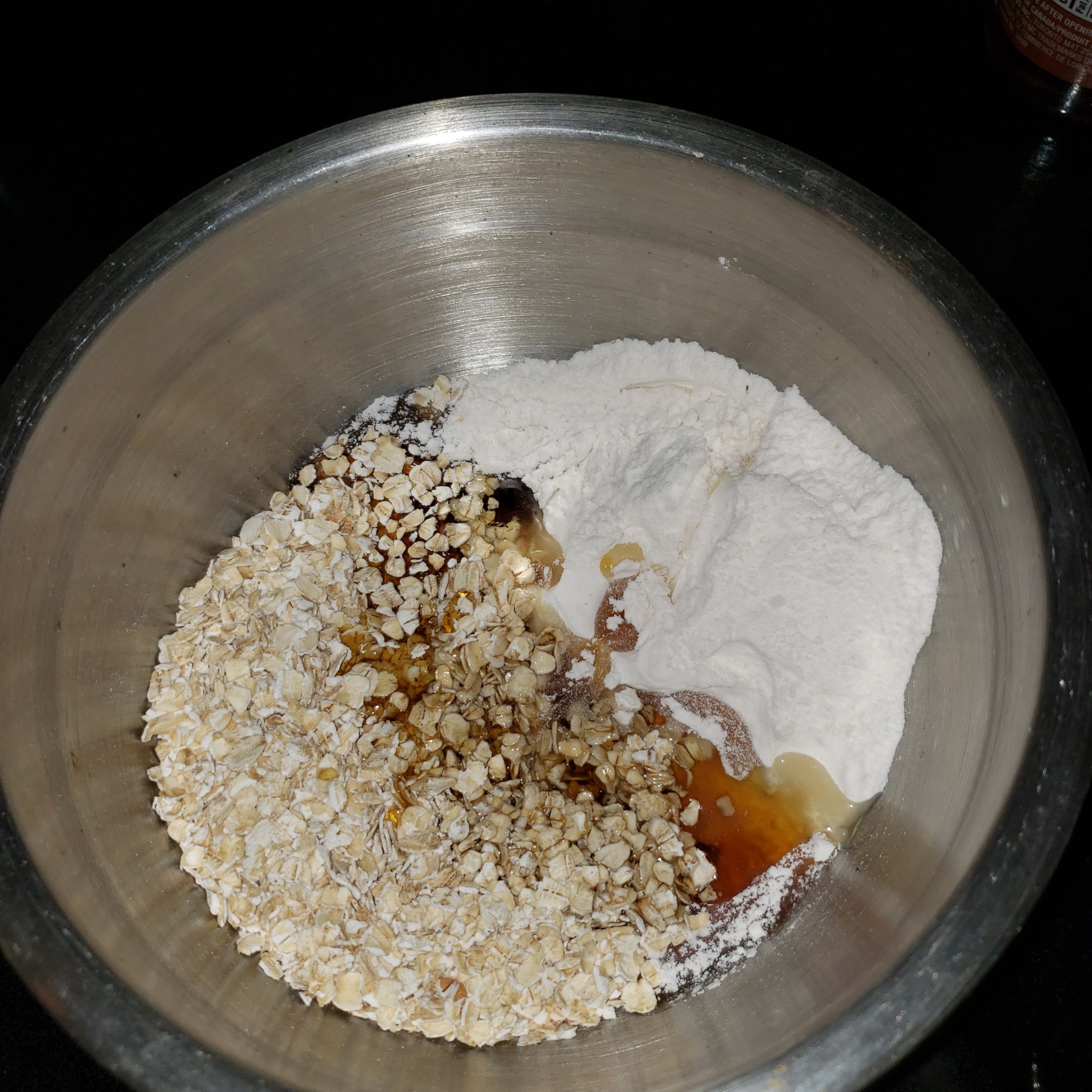 - Add the flour and oats into a bowl. Whisk together until evenly combined.