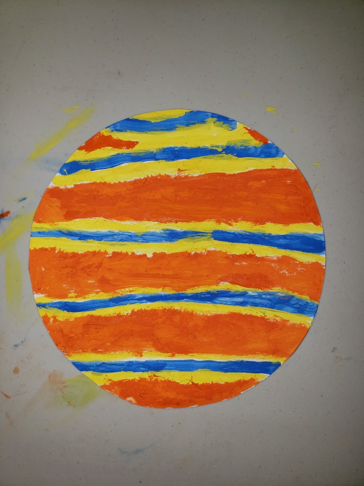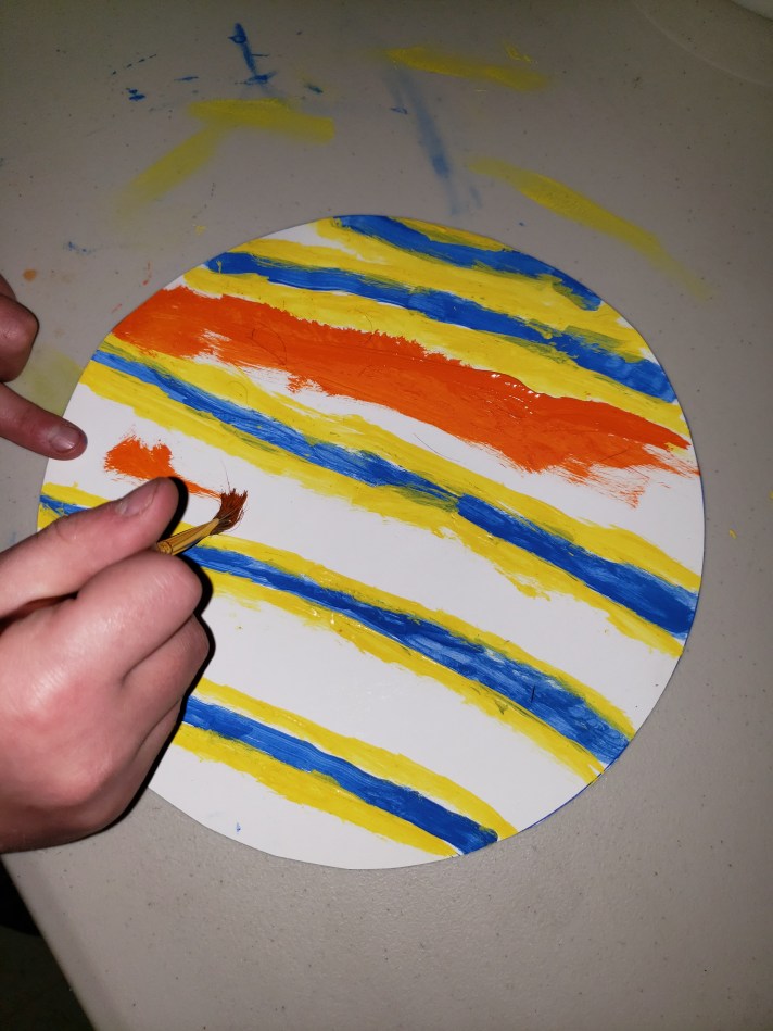 Paint stripes or polka dots, swirls or squares onto the round cat body. Some thing bright a colourful to show how bright an colourful your cool catness is. If using a cereal box make sure to paint the dull cardboard looking size as the shiny picture side doesn’t always absorb paint well. Let it dry.