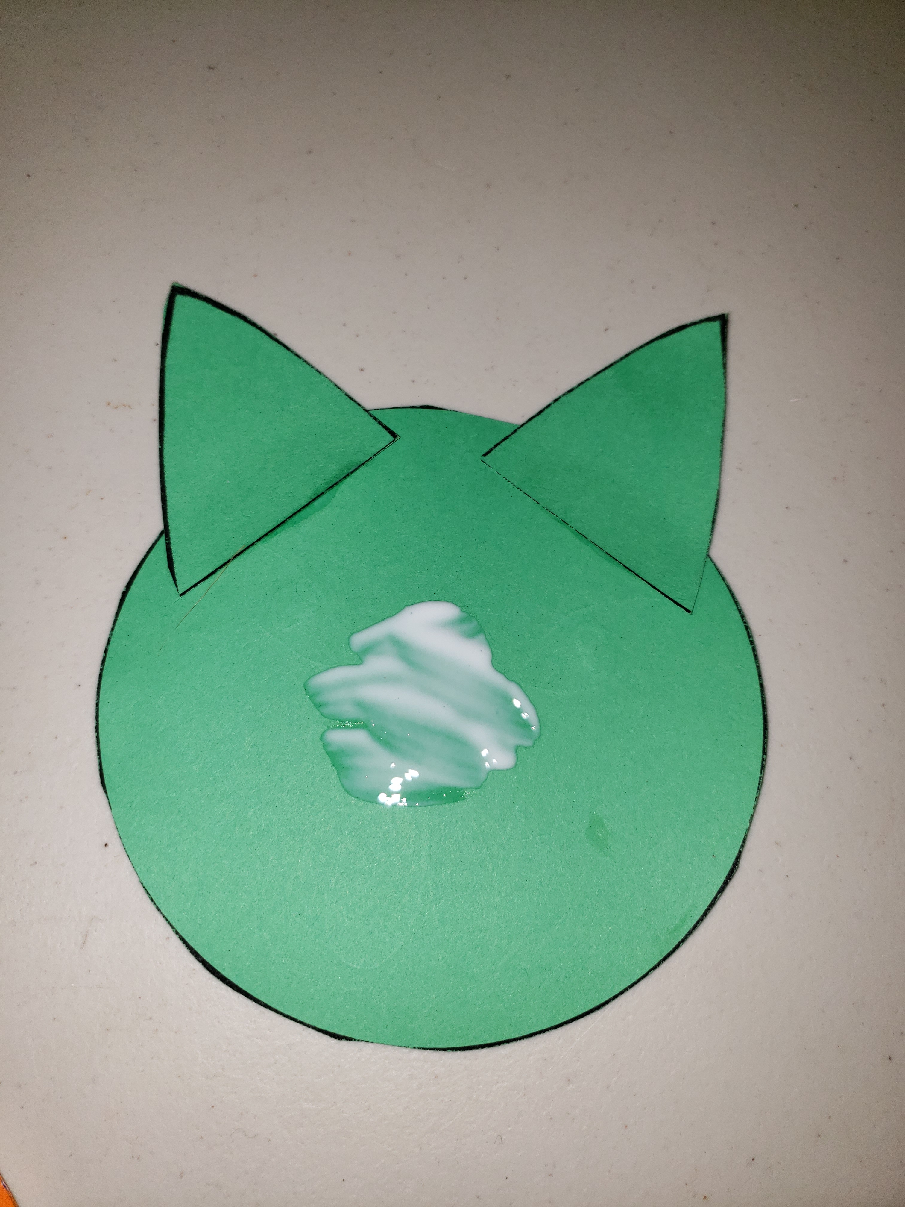 Glue the feet behind the body at the bottom of the circle (opposite the tail) and your cat head onto the centre of his body.