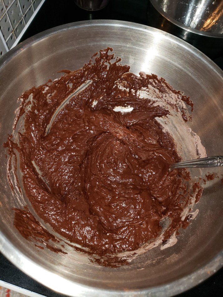 3. Add the Water, oil, syrup, and vinegar into the bowl. Whisk until batter is thoroughly combined.