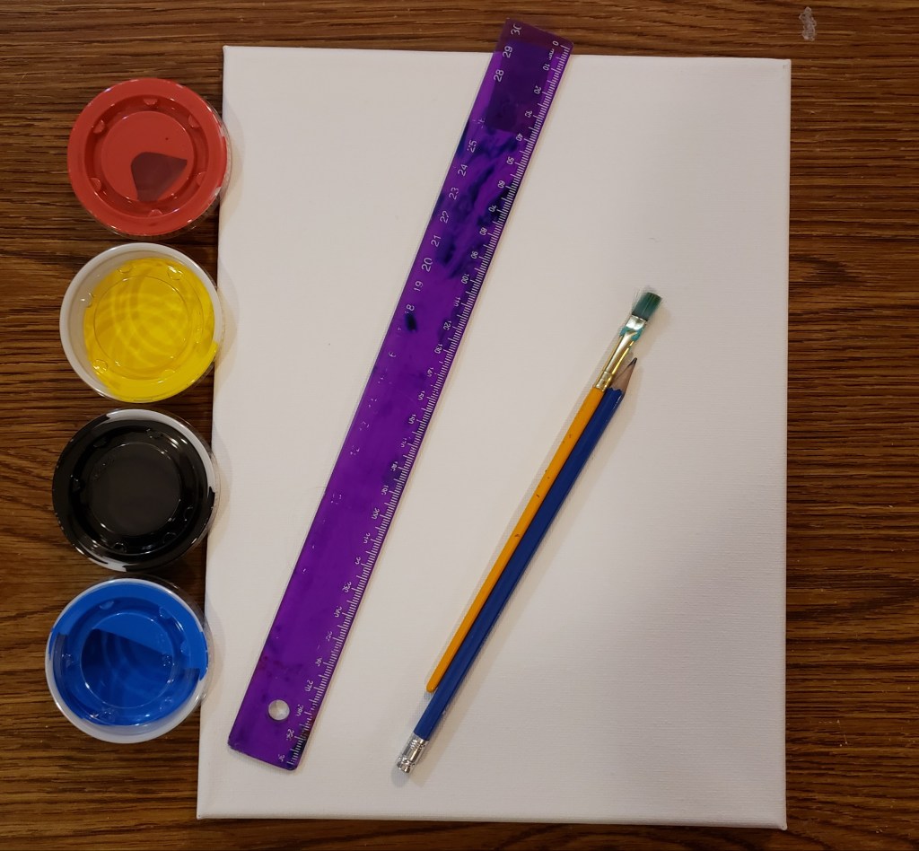 - Paint — Red, Blue, Yellow, Black (and white if you are using a canvas that is not white)