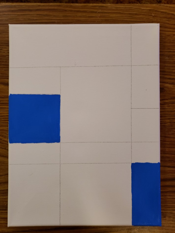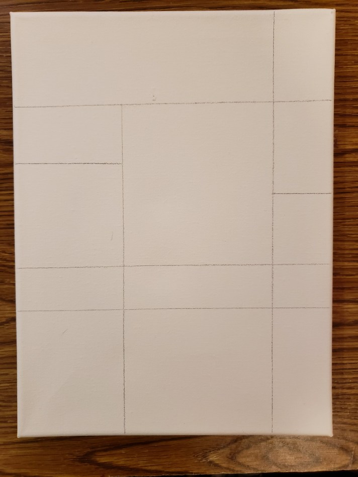 Using your straight edge and pencil lightly draw horizontal and vertical lines creating square and rectangle of different sizes, filling up your canvas.