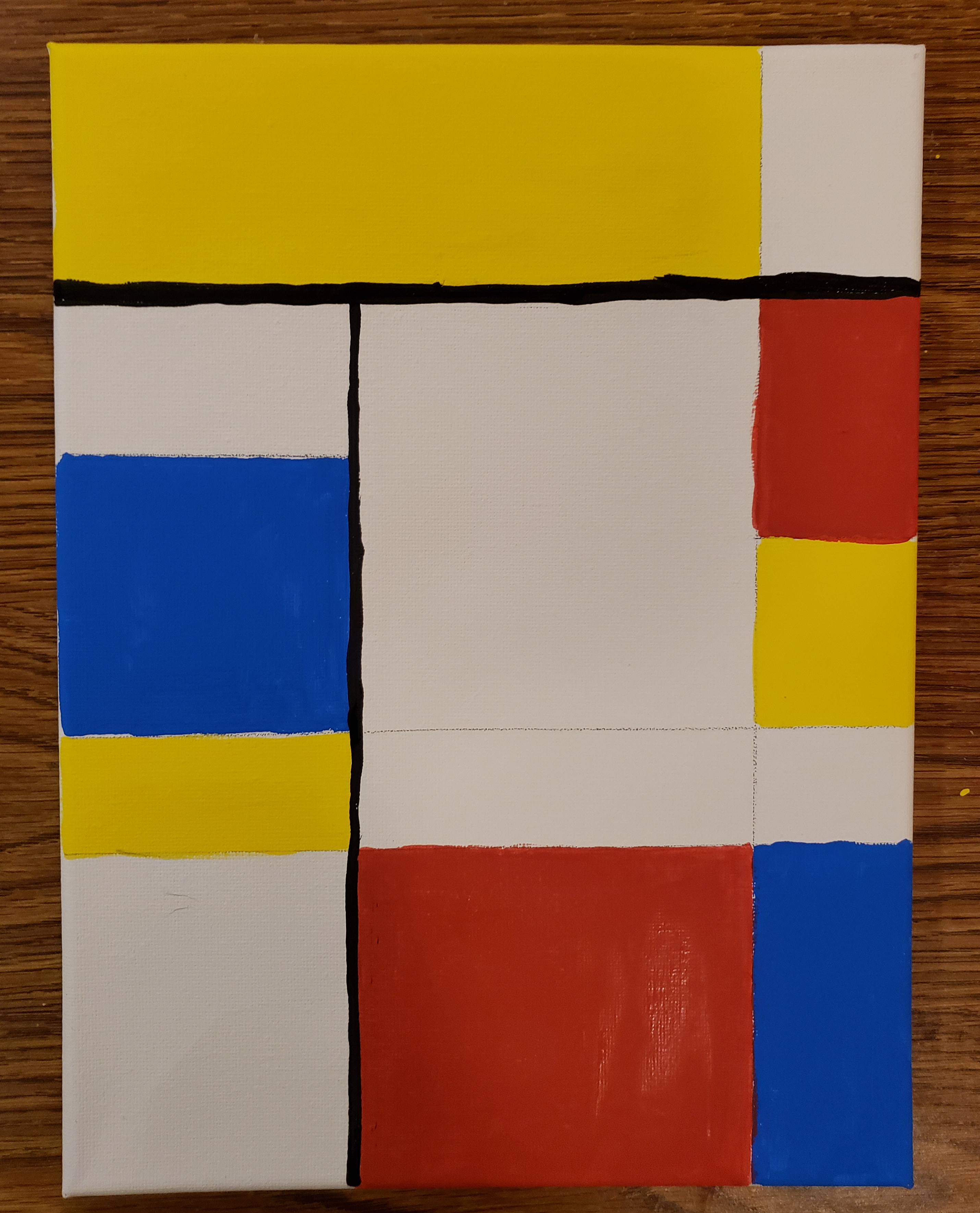 Piet Mondrian is a great way to introduce young artists into the world of abstract art and its a great activity for everyone to do all together.