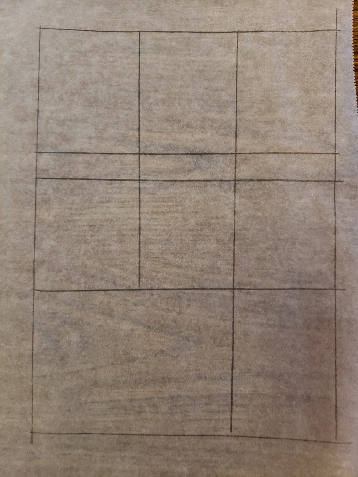Then fill the square with vertical and horizontal lines to make a bunch of different sized square and rectangles.