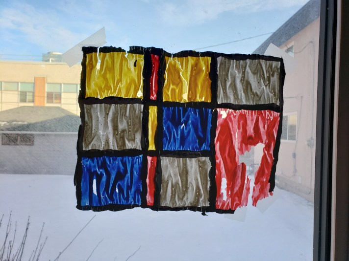 Add some colour to your windows by recreating a simple yet sophisticated suncatcher in the style of Piet Mondrian an abstract artist popular during the first half of the 20th century.