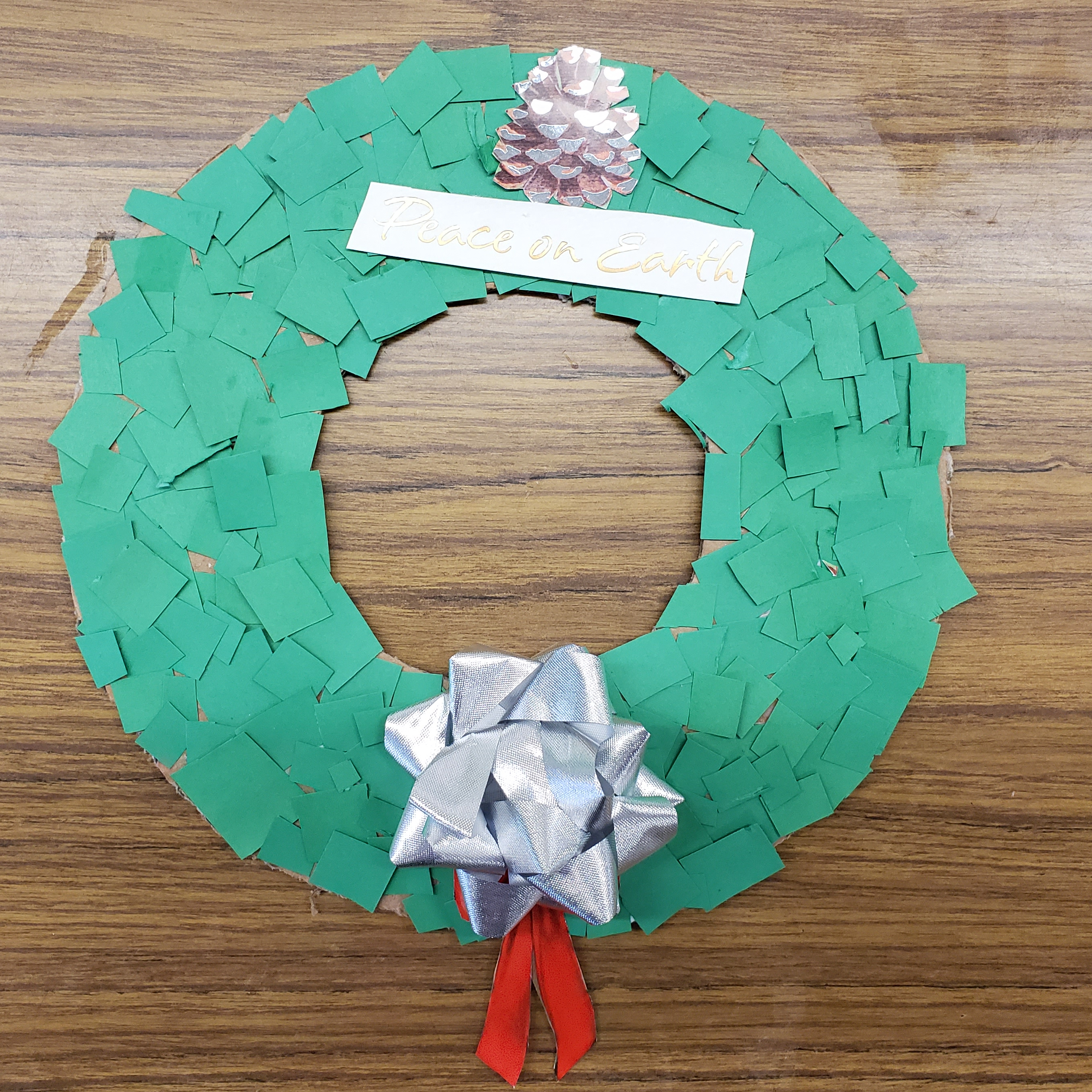 Glue them onto your wreath, attach the bow and hang up for all to see.